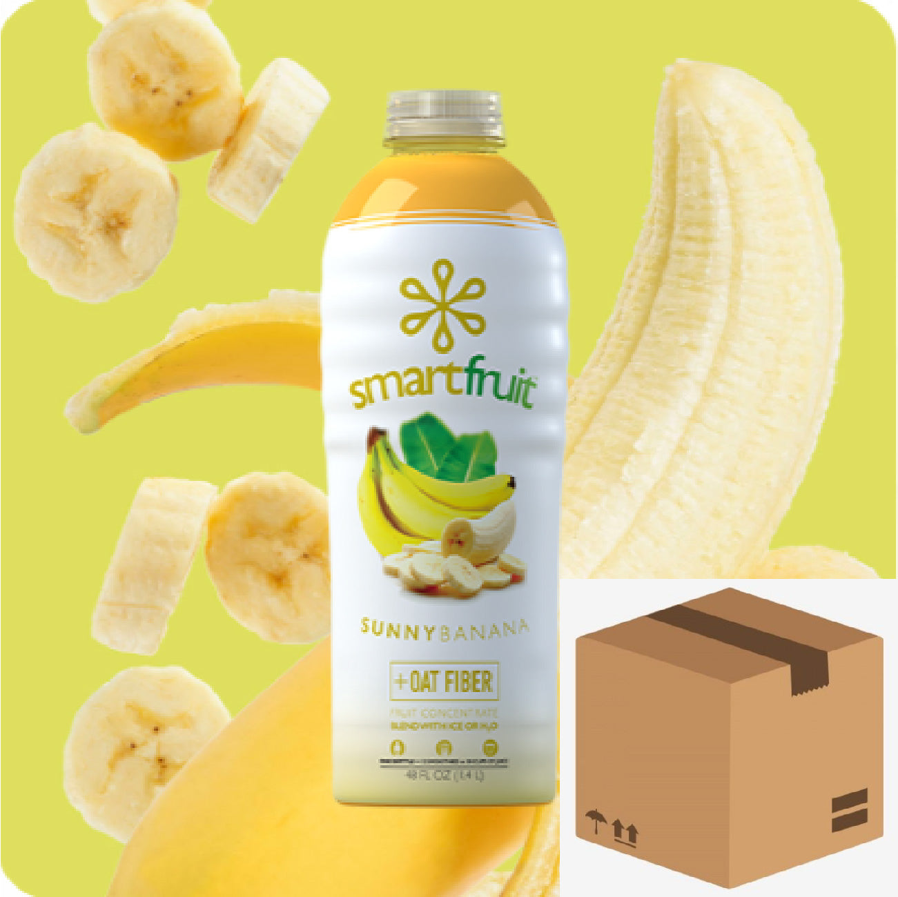 Brighten up your pallet with some Smartfruit™ Sunny Banana. Every bottle of this 100% fruit blend contains a whole bunch of rich and creamy all natural non GMO bananas. We took the care to craft Smartfruit™ in small batches, selecting only the best and freshest raw ingredients. Lastly we boosted this delicious treat with oat fiber which promotes easy digestion and as well as good heart health. So just mix with H2O or ice for a refreshing all natural juice or smoothie and step into the light with Smartfruit™ Sunny Banana.
